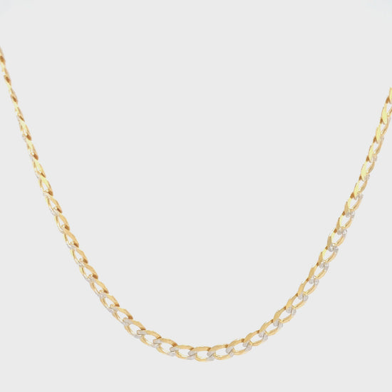 Cadena de oro de 14 k de dos tonos con eslabones cubanos huecos (3,2 mm)