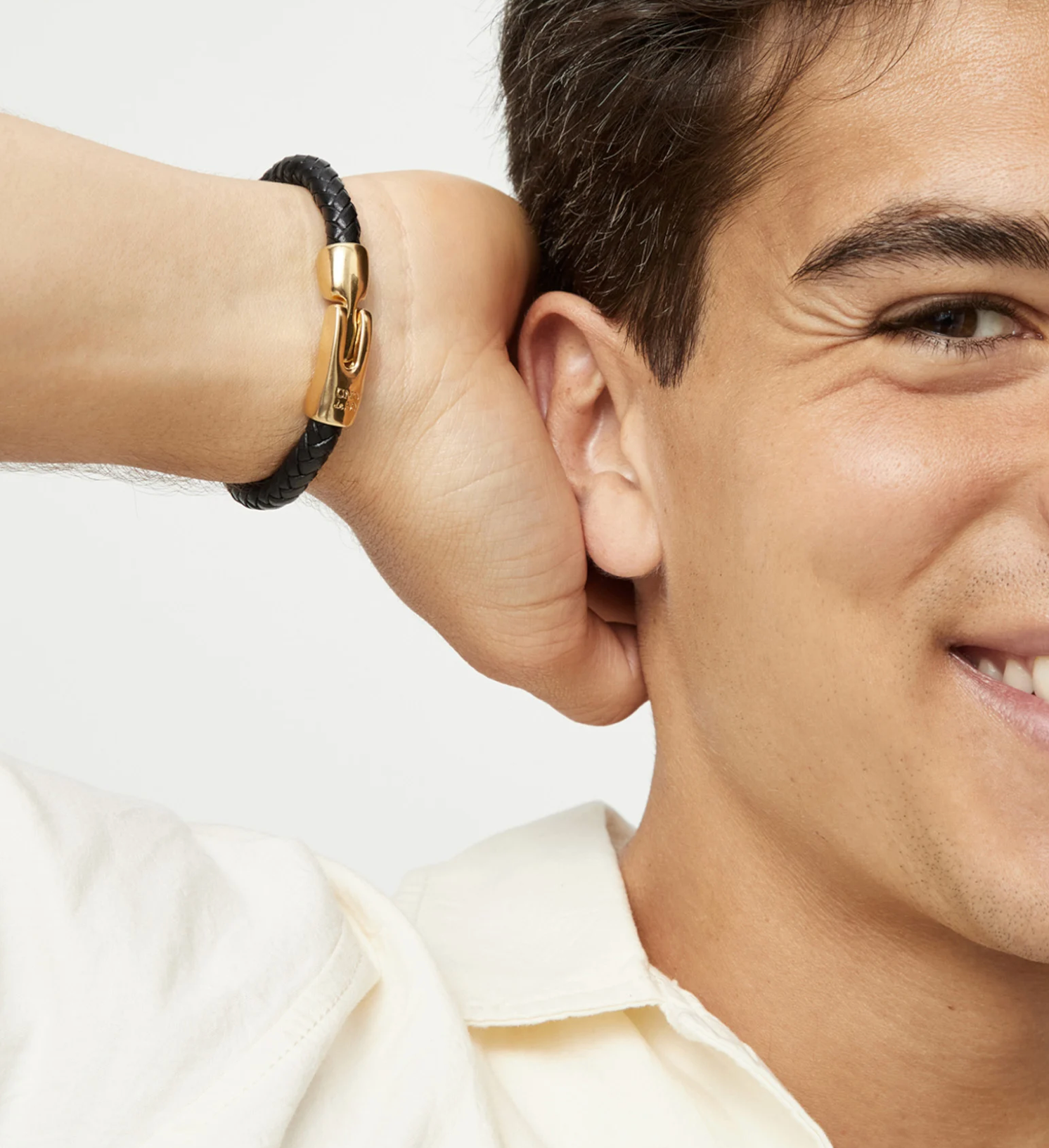Leather braided bracelet with golden clasp
