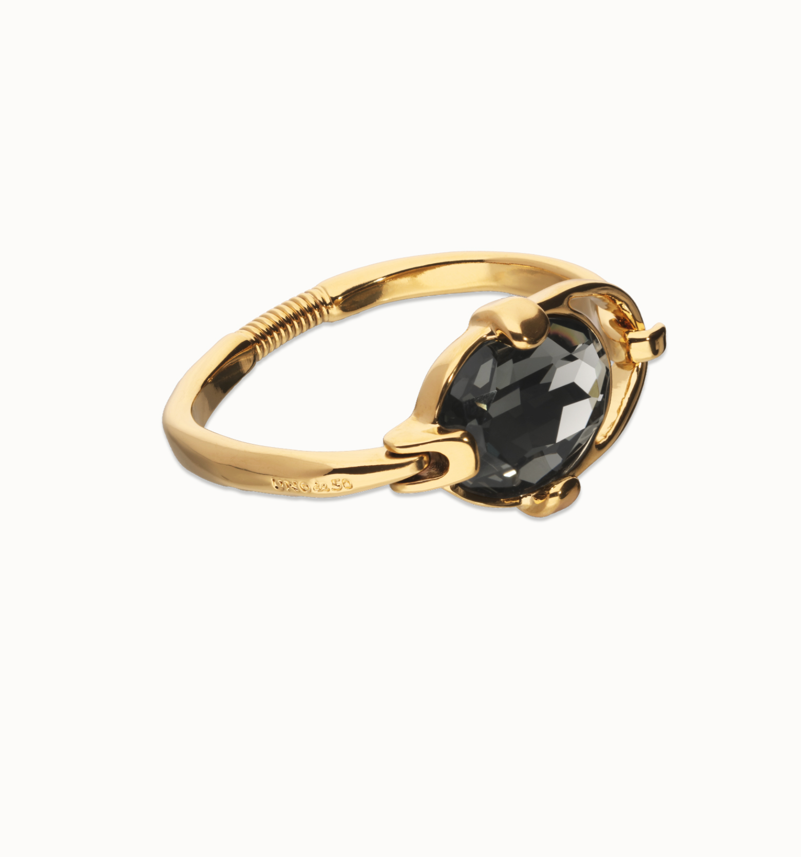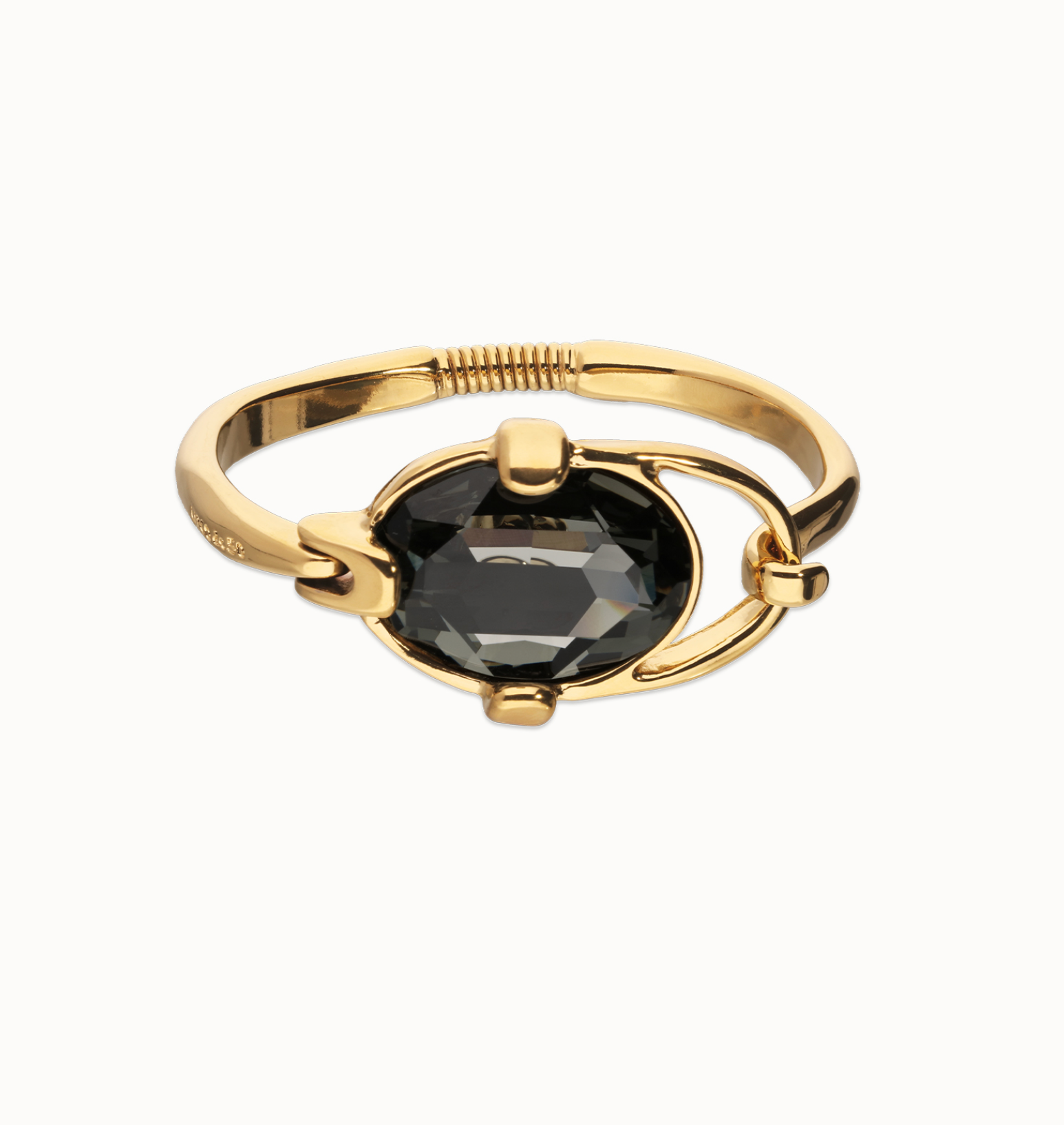 Pulsera rígida bañada en plata de ley con cristal facetado ovalado gris