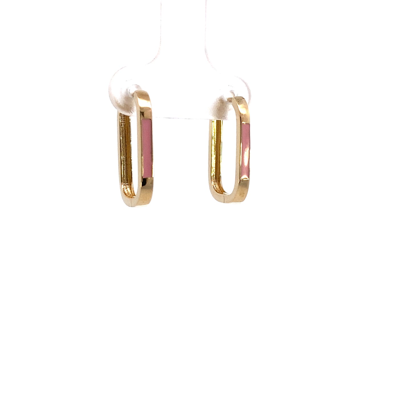 14K Gold Pink Enamel Hoops
