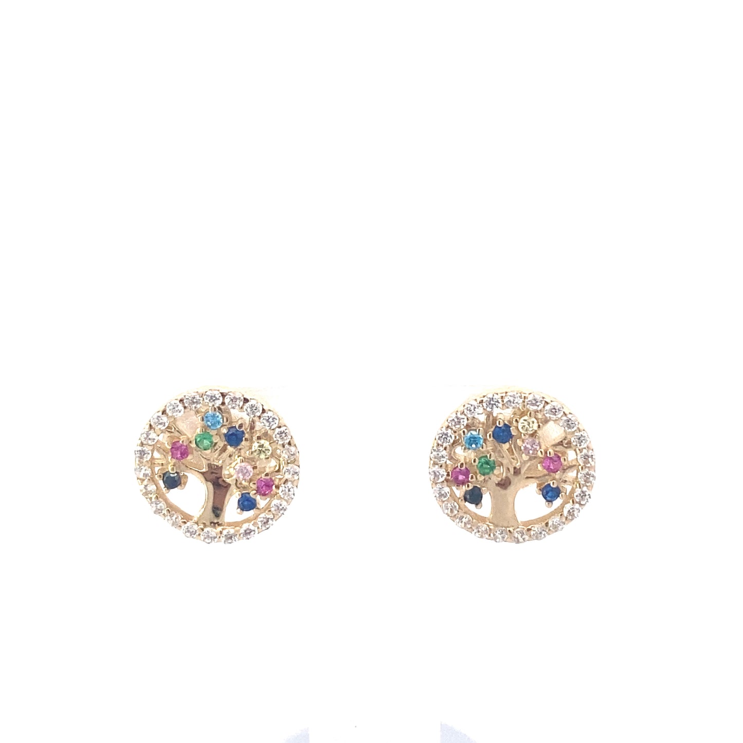 14K Gold Tree of Life Multi Color Stud