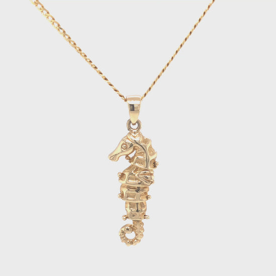 Sea Horse 3D Texture 14K Gold Pendant